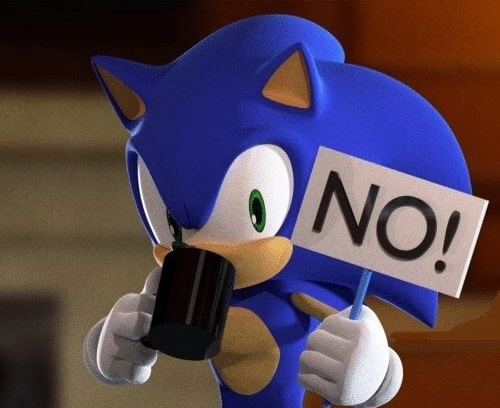 Image upload test. - Sonic drinking from mug holding 'NO!' sign. http://cwcyrix.nsupdate.info/gnu-social/public/url/2