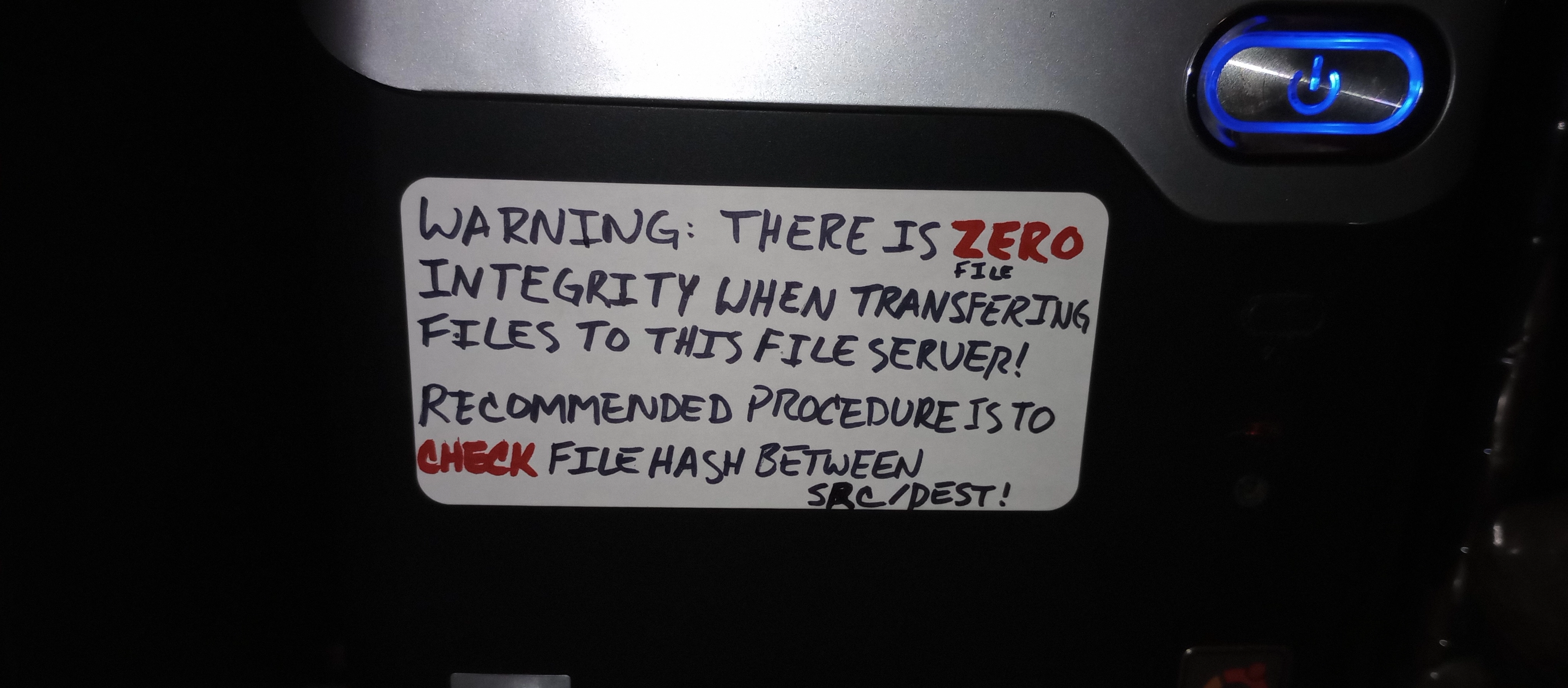 WARNING: THERE IS ZERO FILE INTEGRITY WHEN TRANSFERING [sic] FILES TO THIS FILE SERVER!